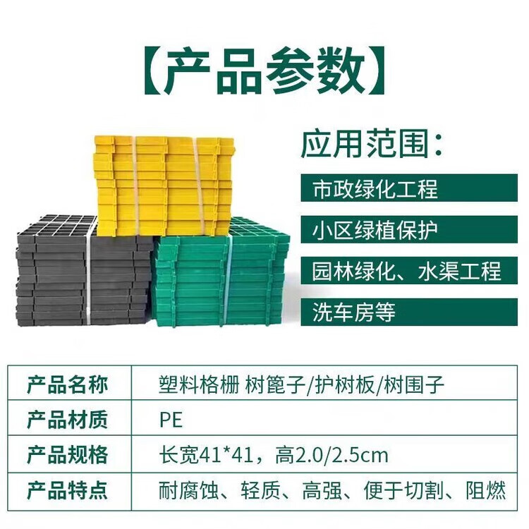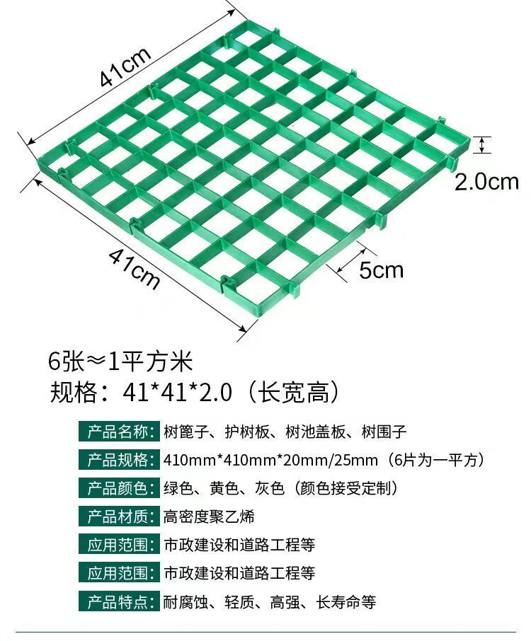 商品名称:绿化护树网格板树坑格栅塑料方格簇树篦子树池盖板 绿色41*41*20mm