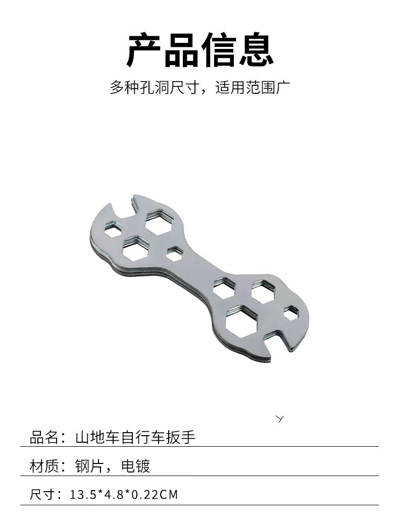 商品名称:万能扳手自行车修车工具花片维修六角多用孔扳子
