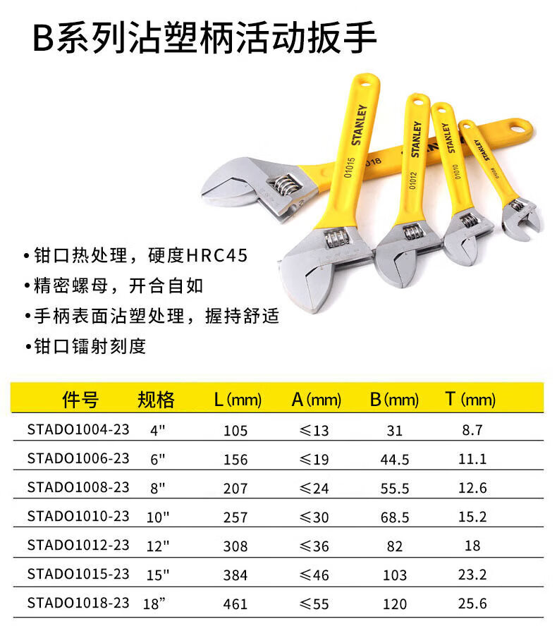 > B系列沾塑柄活动扳手10\"/250mm*1