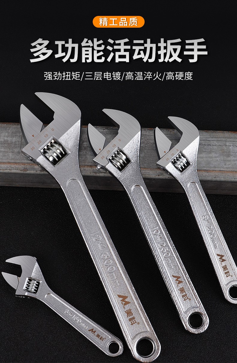 > 活动扳手家用活络扳子维修工具万能活口多功能万用大开口板子短柄 6寸