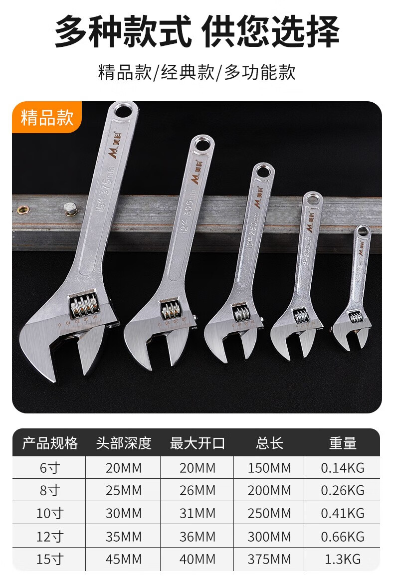 商品名称:活动扳手家用活络扳子维修工具万能活口多功能万用大开口板子短柄 6寸